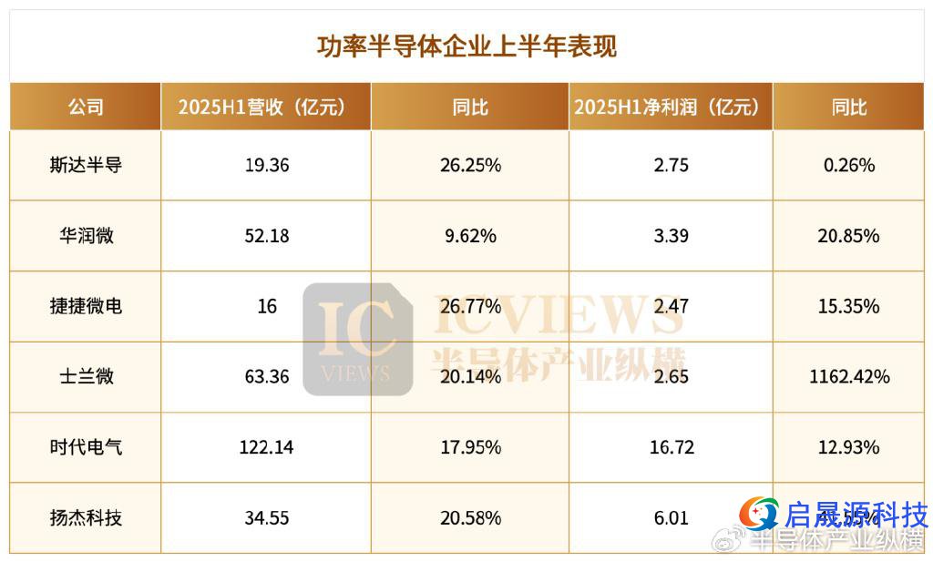 目前 6 家功率半导体大厂相继发布了 2025 年半年报。从营收上看,每家都有 20% 左右的同比增长,净利润也均大幅增长。